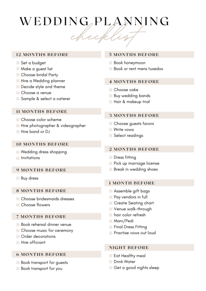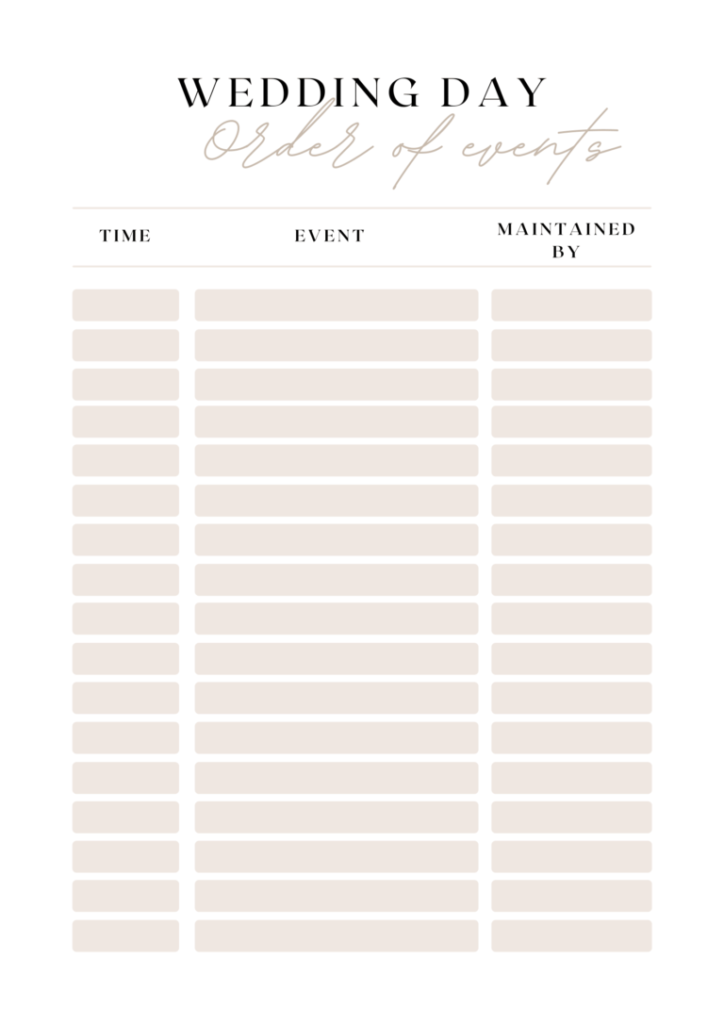WEDDING TIMELINE